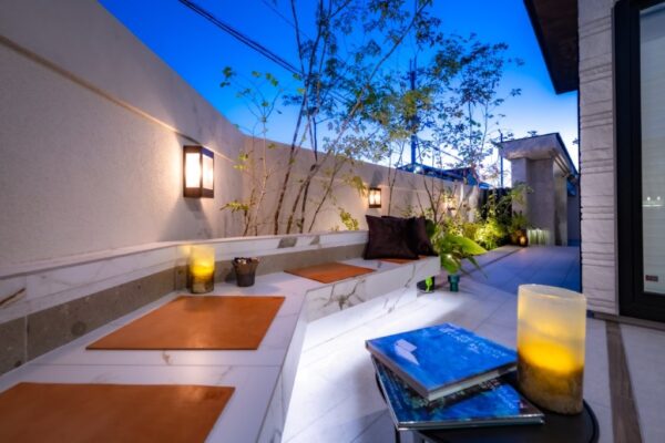 優しき石模様に包まれた、融和とバランスのある外構デザイン
